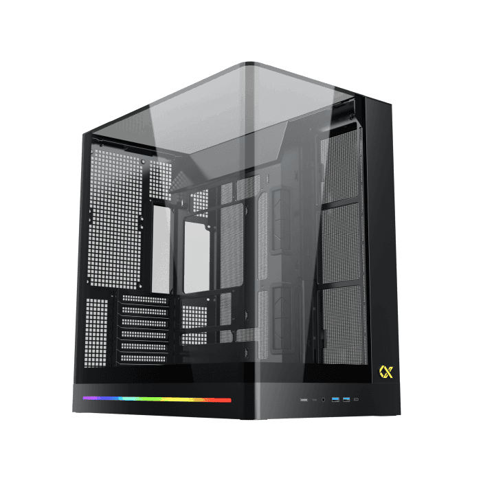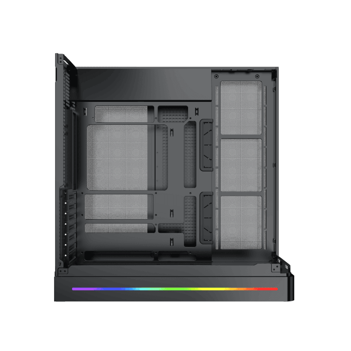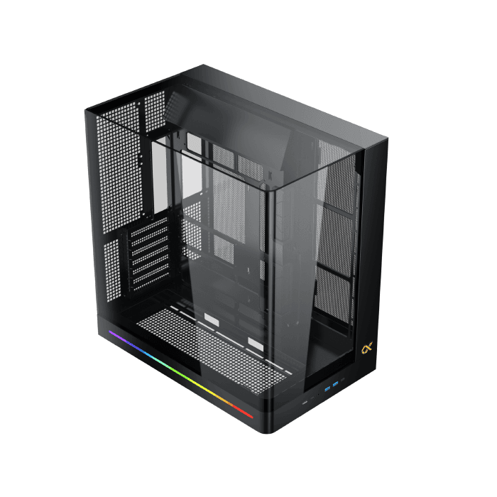 Thùng máy được trang bị tấm kính cường lực cong cao cấp, được chế tác từ một khối duy nhất nhằm đảm bảo độ bền chắc và vẻ đẹp tinh tế. Thiết kế này không chỉ tăng cường độ bền mà còn mang lại góc nhìn toàn cảnh liền mạch, giúp bạn trưng bày hệ thống bên trong một cách sang trọng và rõ nét.